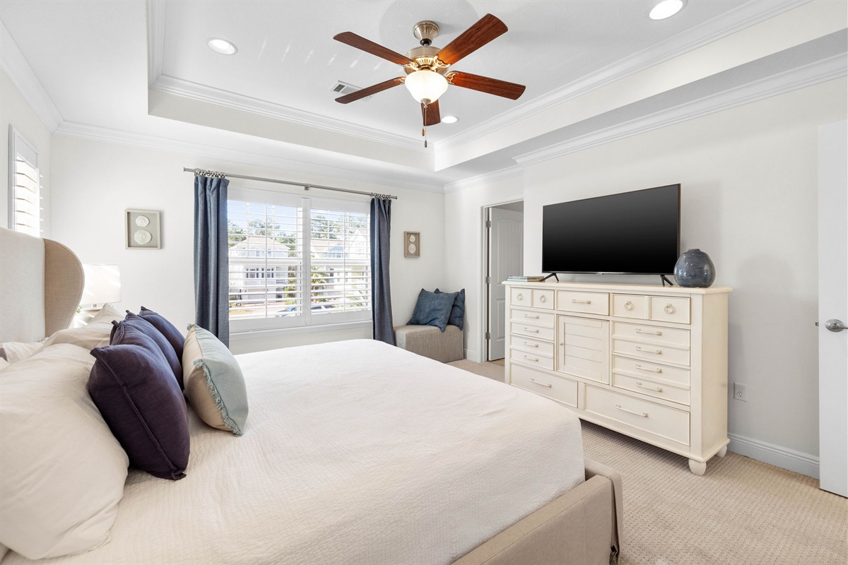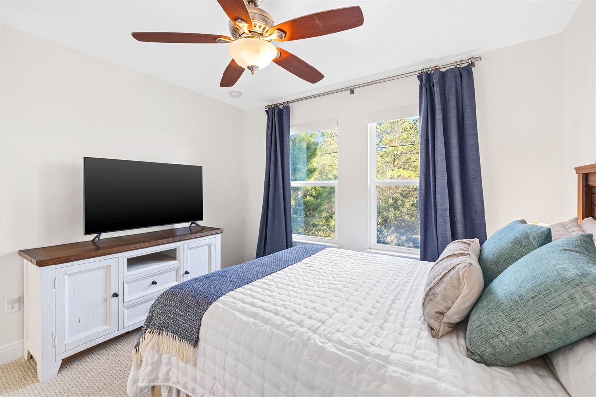 • Private first-floor guest suite with a king bed and an adjacent full bathroom.