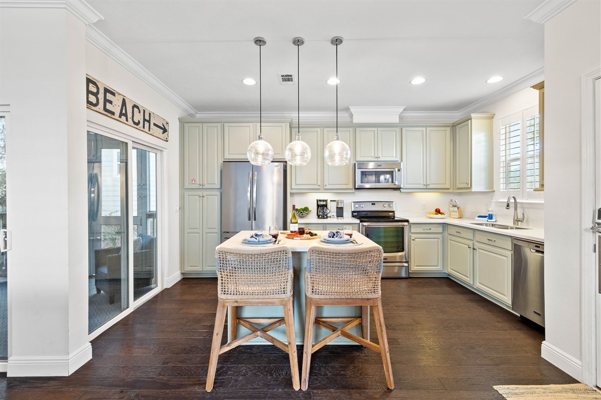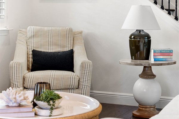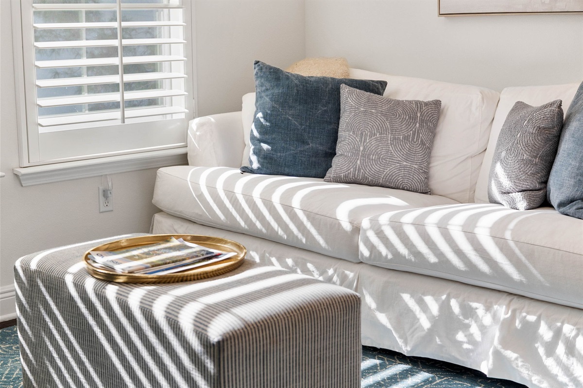 Tide Out 30A is a beautifully designed 4-bedroom, 3-bathroom home that sleeps up to 10 guests, blending coastal chic style with modern comfort. Blackout shades in every bedroom and a Dohm sound machine ensure a restful night's sleep.
