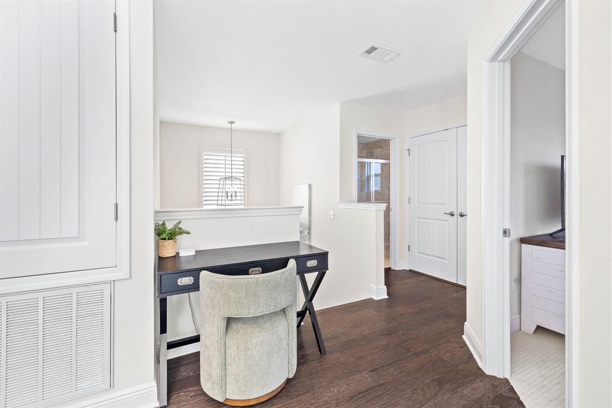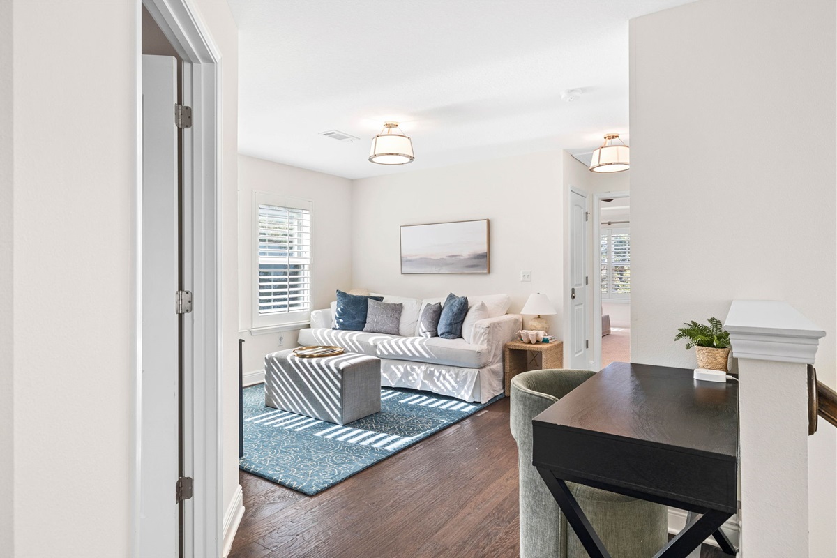 • Spacious loft with a sofa, dedicated workspace, and smart TV.