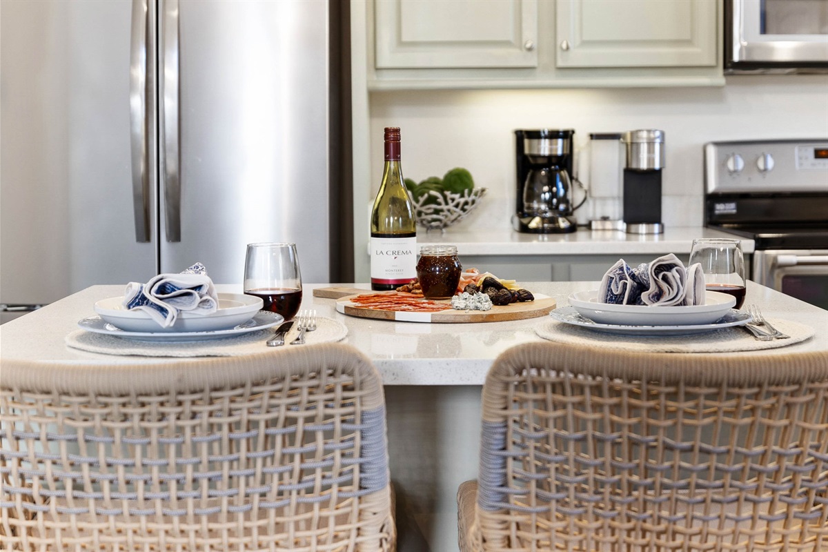 • Fully stocked kitchen with both Keurig and drip coffee makers.