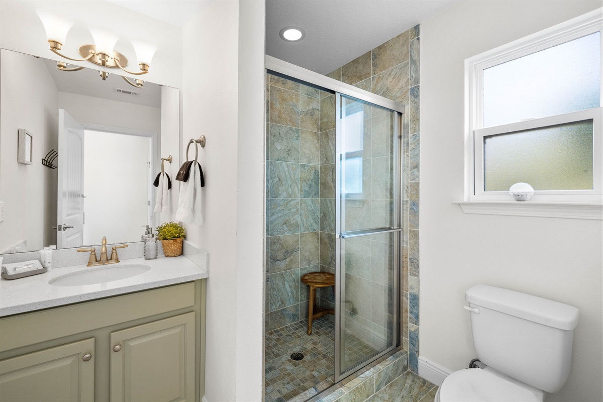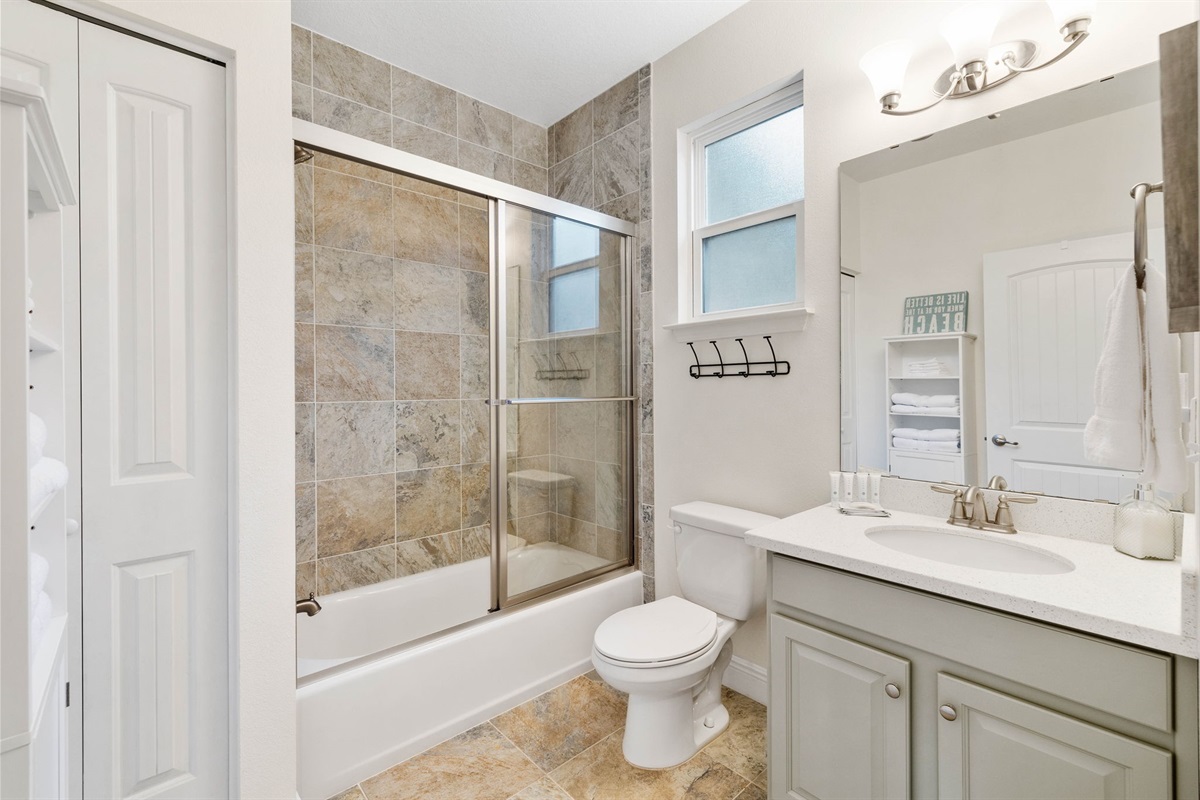 • A shared full bathroom for the two guest bedrooms.