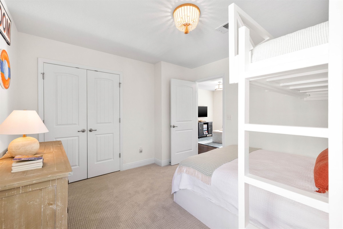 • One bedroom with a twin-over-queen bunk bed.
