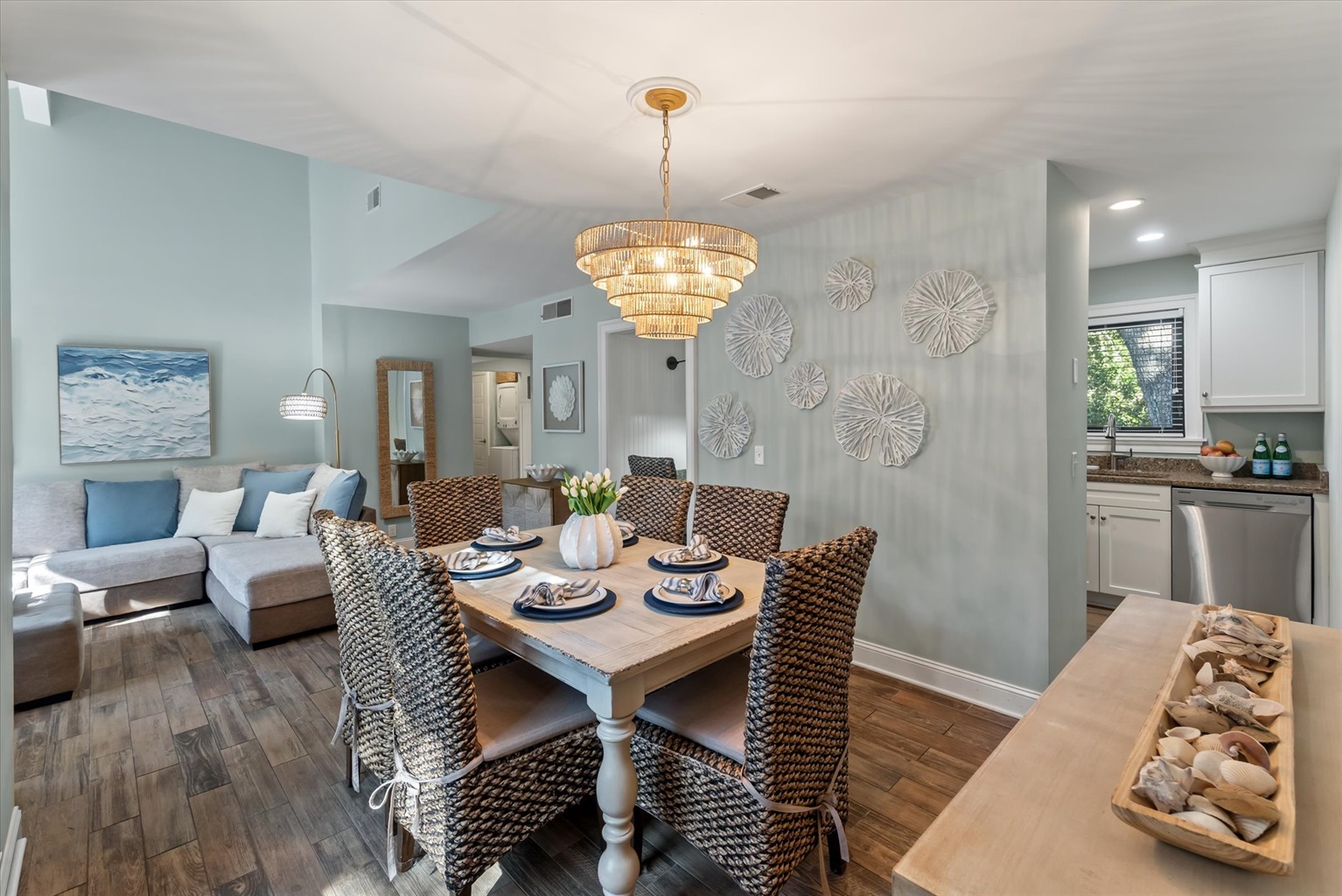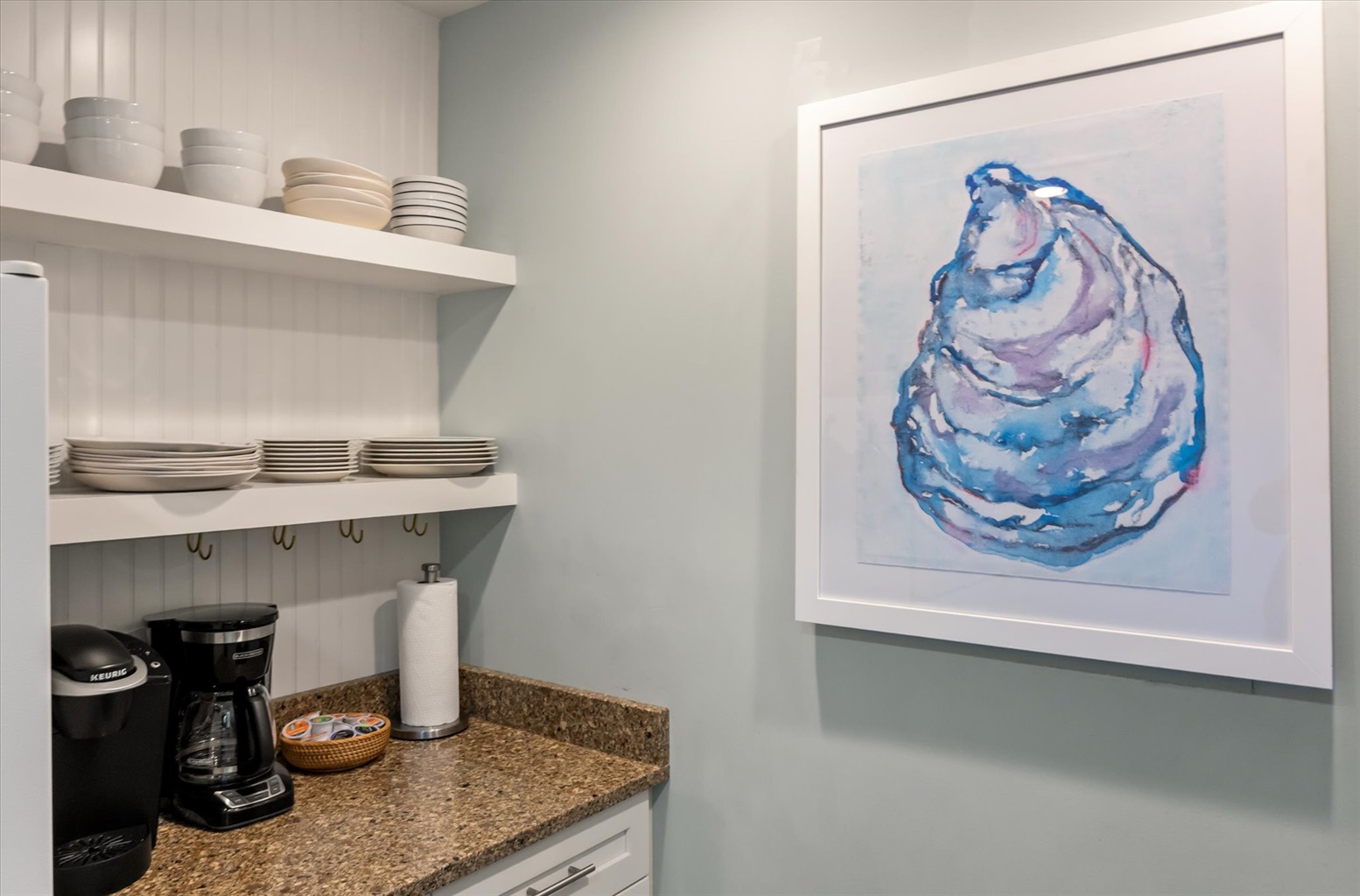 • Open-concept coastal chic interior with a fully stocked kitchen – Keurig, sharp knives, all essentials